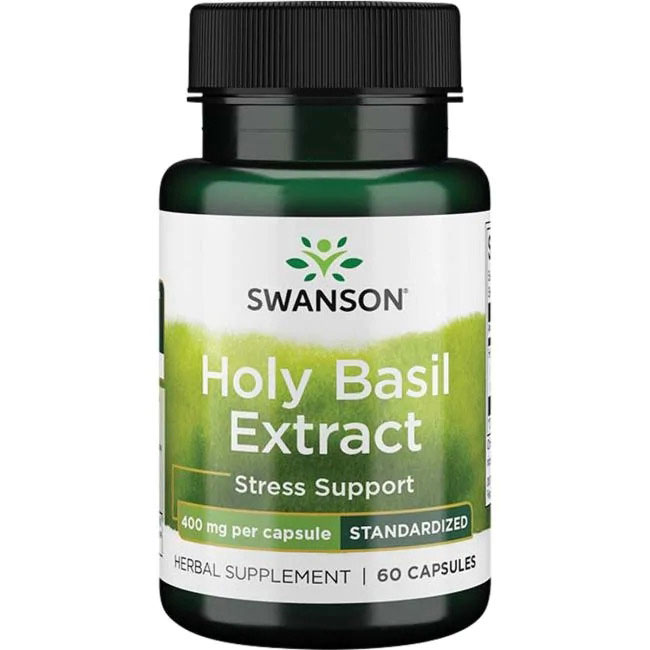 Свещеният Босилек на Суонсън представлява чист екстракт от листата на растението Свещен Босилек (Ocimum sanctum). Всяка доза гарантирано доставя 2% урсолична киселина на организма, която се свързва с много от положителните свойства, които билката оказва върху човешкото здраве.