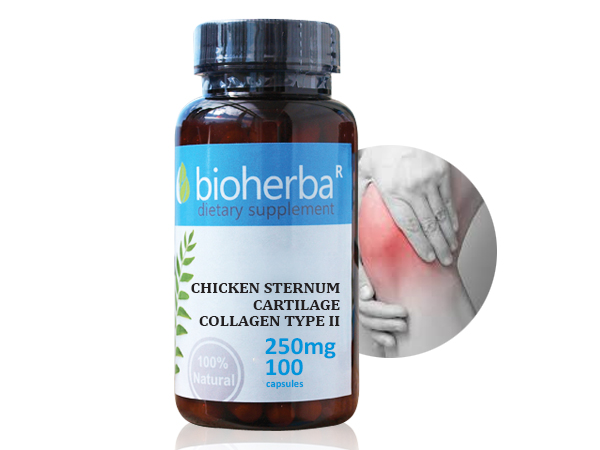 Съдържание на една капсула: 250мг Пилешки Колаген тип II.