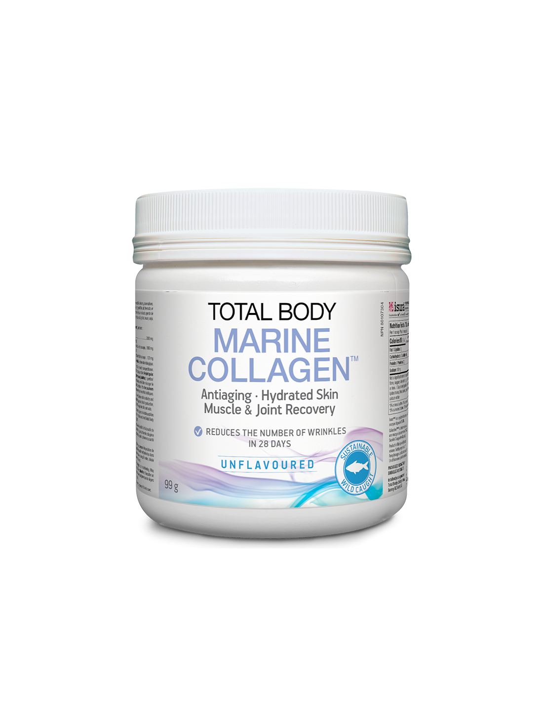 Колагенът е най-разпространения протеин в организма и ключов фактор за структурата и устойчивостта на косата, кожата, ноктите и съединителната тъкан. Рибен колаген на прах Total Body Marine Collagen съдържа патентованата съставка Collactive (100% натурален комплекс от морски колаген и еластинови пептиди в същото съотношение срещащо се в човешката кожа).