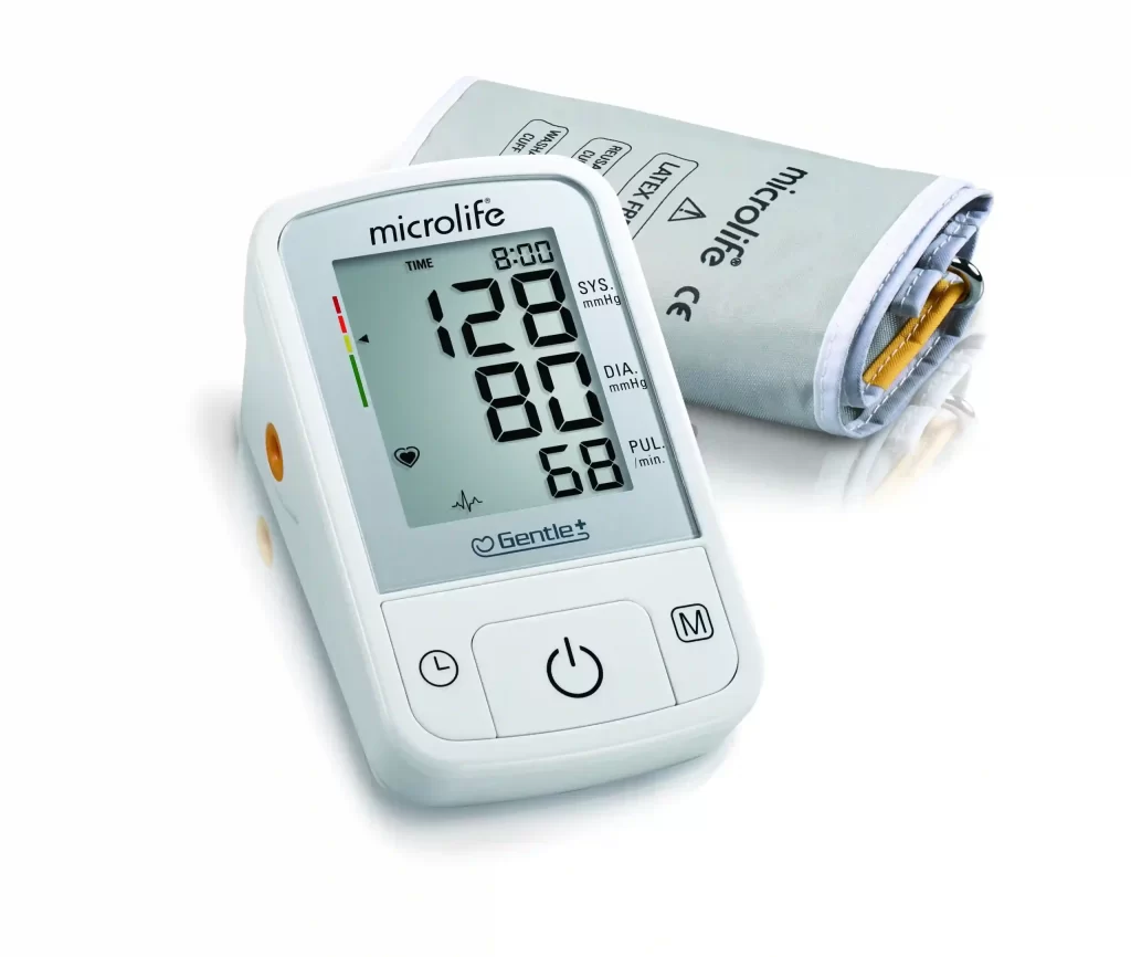 Напълно автоматичен апарат за кръвно налягане, базиран на осцилометричния метод за измерване.