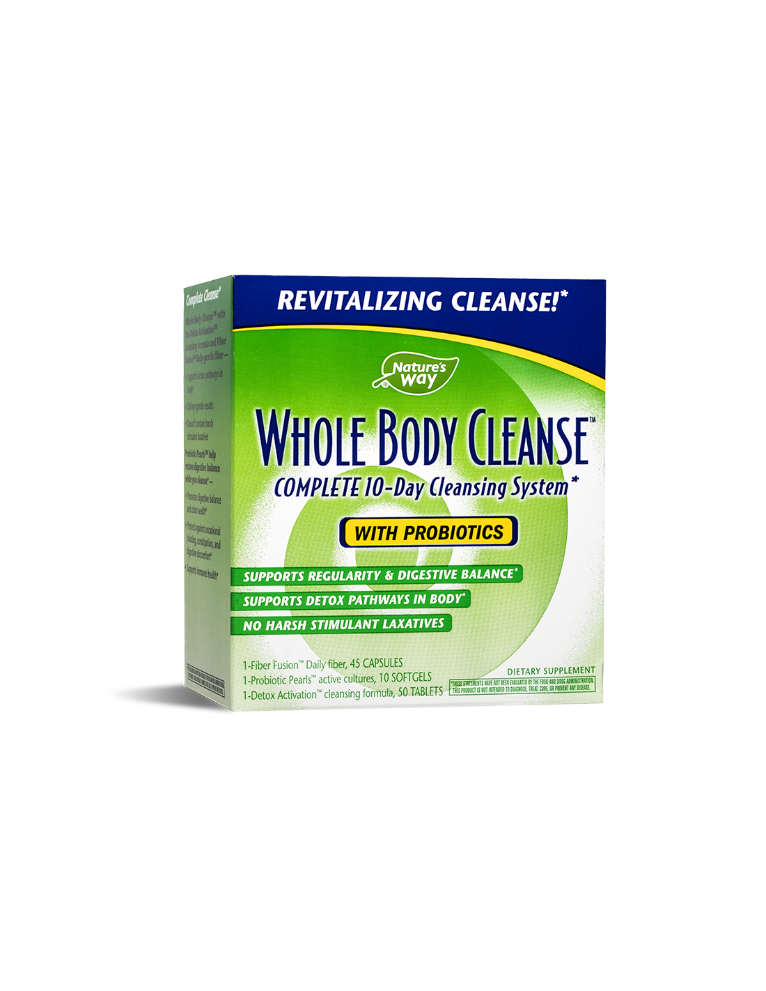 Фибрите играят важна роля за нормалното храносмилане и работата на стомаха. Whole Body Cleanse™ на Nature’s Way съдържа комбинация от разтворими и неразтворими фибри и по този начин подобрява метаболитните процеси в организма. Фибрите помагат за понижаване на лошия холестерол и съдействат за балансирането на кръвната захар. Допринасят за прочистването на червата и пълноценното функциониране на отделителната система.