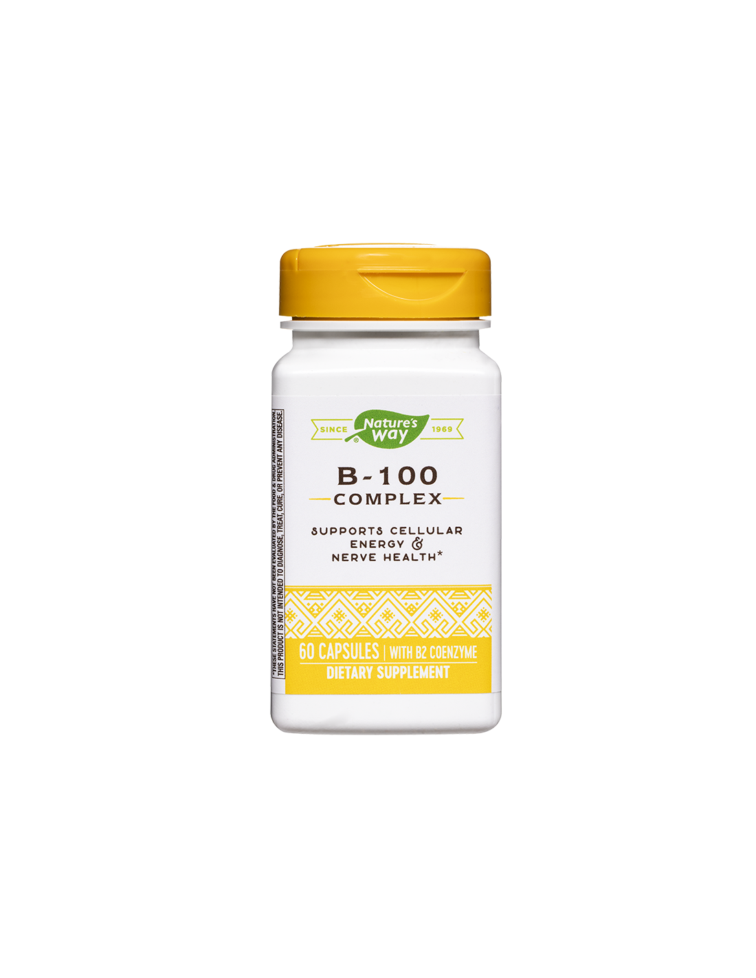 Витамин В100 комплекс на американската компания Nature’s Way e първокласна формула съдържаща пълен комплекс витамини от група В, допринасящи за нормалното протичане на обменните процеси в организма.