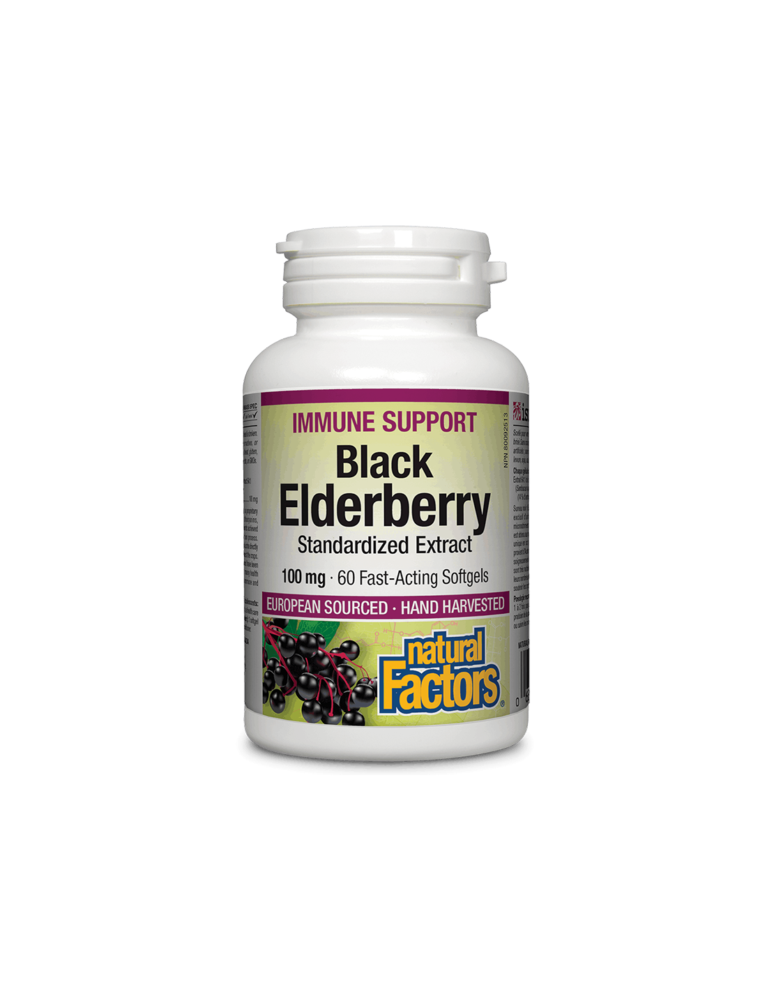 Black Elderberry Standardized Extract на Natural Factors е естествен продукт в подкрепа на дихателната и имунната система.