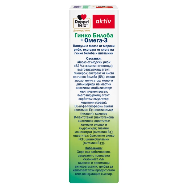 - Допелхерц Актив Омега 3 + Гинко Билоба подпомага кръвообращението на мозъка и при студени крайници