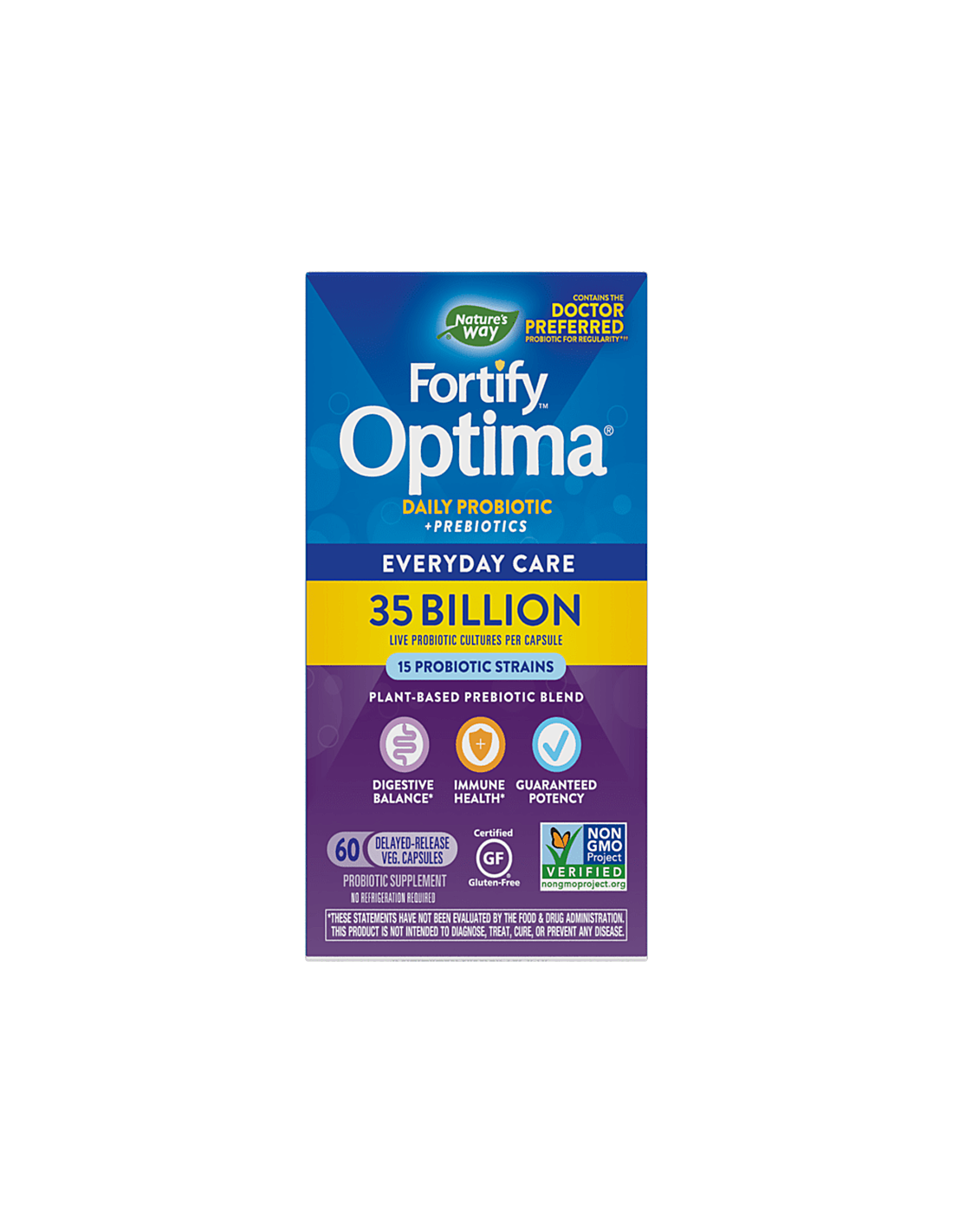 Примадофилус оптима е мощно (35 милиарда жизнеспособни млечни бактерии) и разнообразно (14 щама) обогатяване с пробиотици за чревната микрофлора.