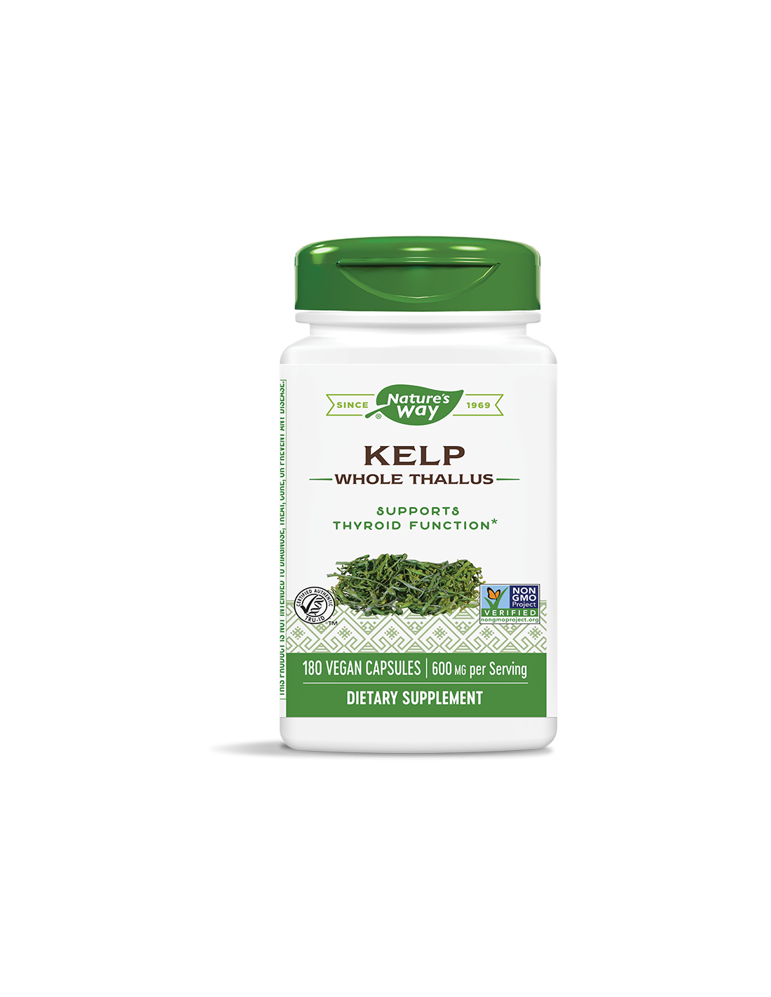 Здраве и дълголетие чрез лечебната сила на природата – това означава да се довериш на билките. Келпът (Ascophyllum nodosum) е хранително морско водорасло. Този вид расте в крайбрежните райони на дълбочина от нула до 300 метра. Nature’s Way използва изцяло изсушено растение, което гарантирано съдържа 0.06% йод.