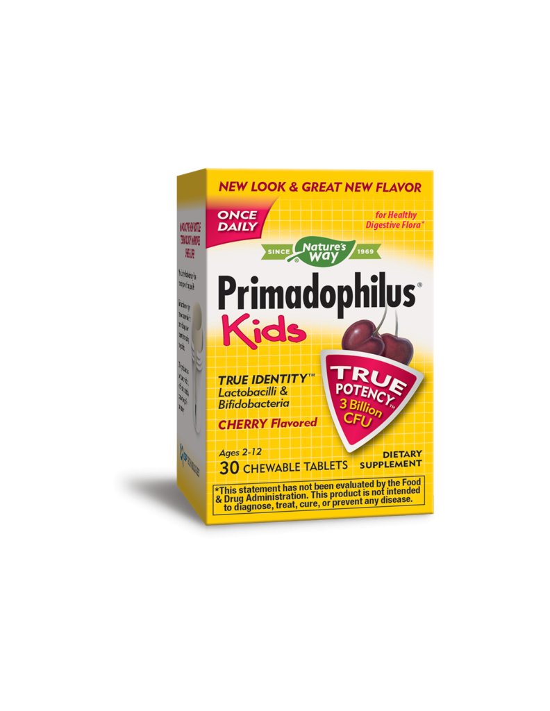 Natures Way Примадофилус Кидс 3 млрд. активни пробиотици, 30 дъвчащи таблетки с вкус на череша