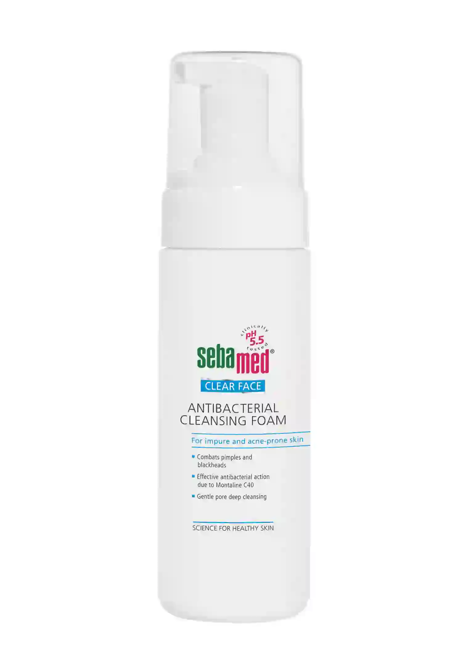 Антибактериалната пяна без алкали почиства нежно порите в дълбочина. Понася се добре от кожата, премахва комедоните и излишната кожна мазнина без да я изсушава. Със своето рН 5,5 еднакво с това на здравата кожа, антибактериалната почистваща пяна стабилизира нейния естествен защитен слой, предпазващ от възпаления и инфекции. Дерматологично тествана.
