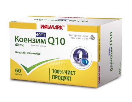 Валмарк Коензим Q10 60 mg Q10Коензим Q10 е основен компонент на всяка клетка, който осигурява енергия за нормалното протичане на жизненоважни за човешкия организъм процеси и затова е широко използван под формата на хранителна добавка. Като мощен антиоксидант коензим Q10 спомага за предпазване на клетките от увреждащото действие на свободните радикали. Необходимото количество коензим Q10 се образува чрез синтез в човешкото тяло и в по-малка степен чрез храната.