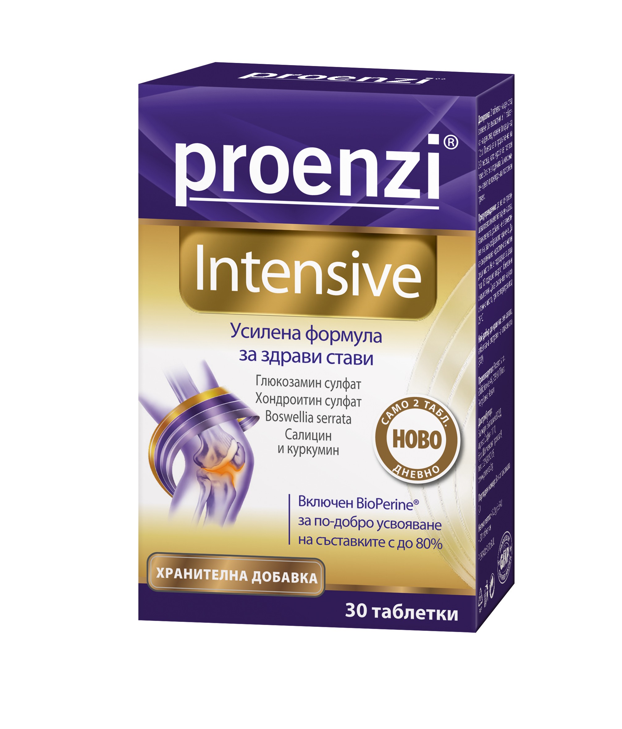 Проензи® Интензив е обогатен продукт с нова концентрирана формула за здравето на ставите. Редовният прием на Проензи® Интензив в комбинация с физическа активност има още по-благоприятно въздействие за ставите, за оптимално усвояване при всяко движение на вашето тяло.